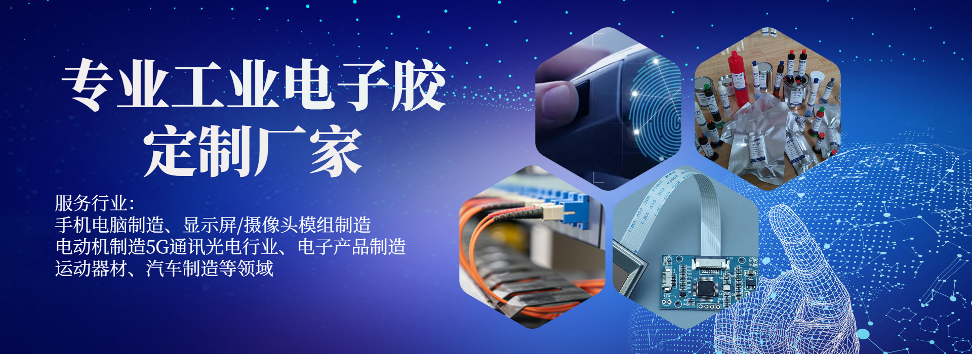 為客戶提供環氧膠、UV膠、臨時粘接膠、UV加熱雙固化膠、丙烯酸結構膠等工業電子用膠解決方案
